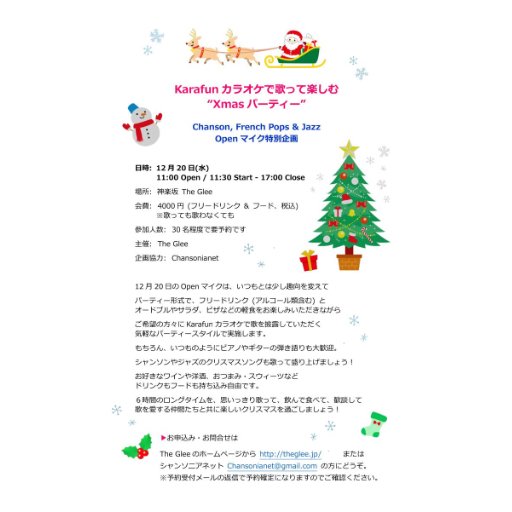 THEGLEEランチタイムイベントXmasパーティー Chanson, French Pops & Jazz [Open Mic]特別企画