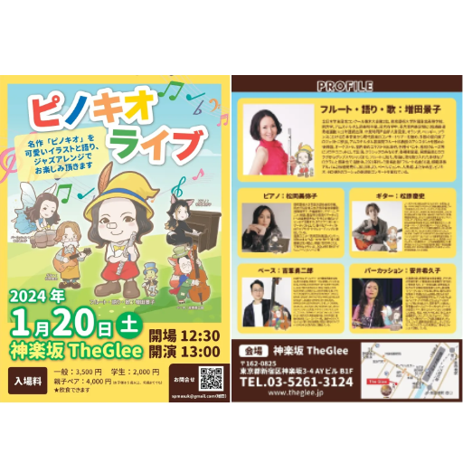 フルート・語り・歌:増田景子、ピアノ:松岡美弥子、ギター:松原慶史、ベース:吉峯勇次郎、パーカッション:安井希久子