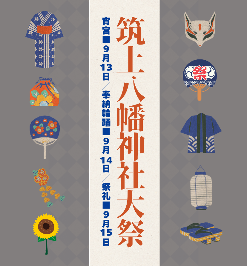 | Time | 9月13日(金)16時から/9月14日(土)18時から/9月15日(日)神事11時から、大人神輿14時出発 |