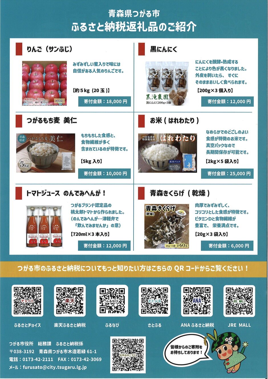 | Contact | つがる市東京事務所(TEL.03-5946-8505) |