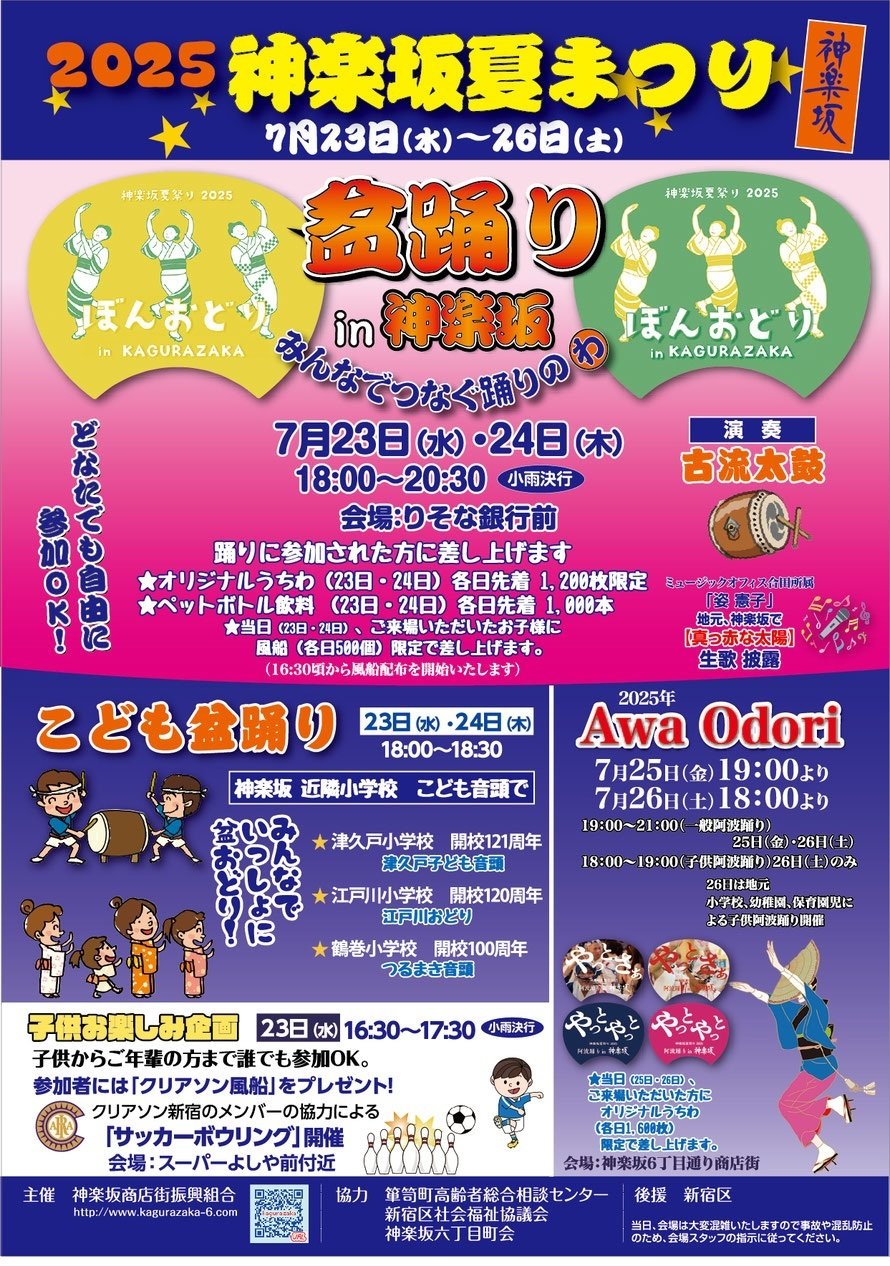 | Location | 7月23日・24日:詳細は記事参照 7月25日・26日:神楽坂6丁目通り商店街 |