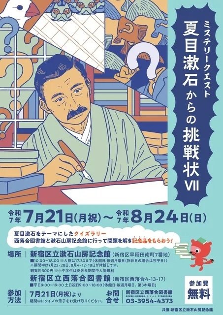 | Participation Fee | 【西落合図書館】 無料 【漱石山房記念館】 一般300円、小中学生100円 ※小中学生は土日祝日および夏季休業日(7/21~8/24)は無料 |