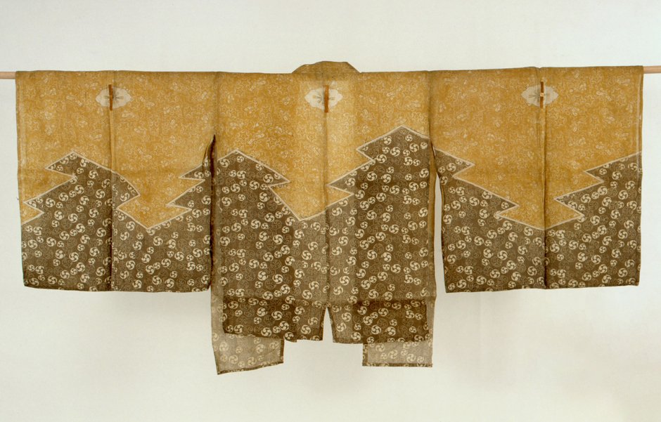 素襖(すおう)や肩衣(かたぎぬ)、半袴(はんばかま)などの狂言装束は、麻地に染模様が特徴で、素朴ななかにもインパクトがあり、楽しいデザインが多く見られます。また狂言面は、誇張した表情の滑稽味あふれるものや、動物などの親しみやすいものが用いられます。そうした装束や面は狂言の魅力を引き立てる重要な要素です。