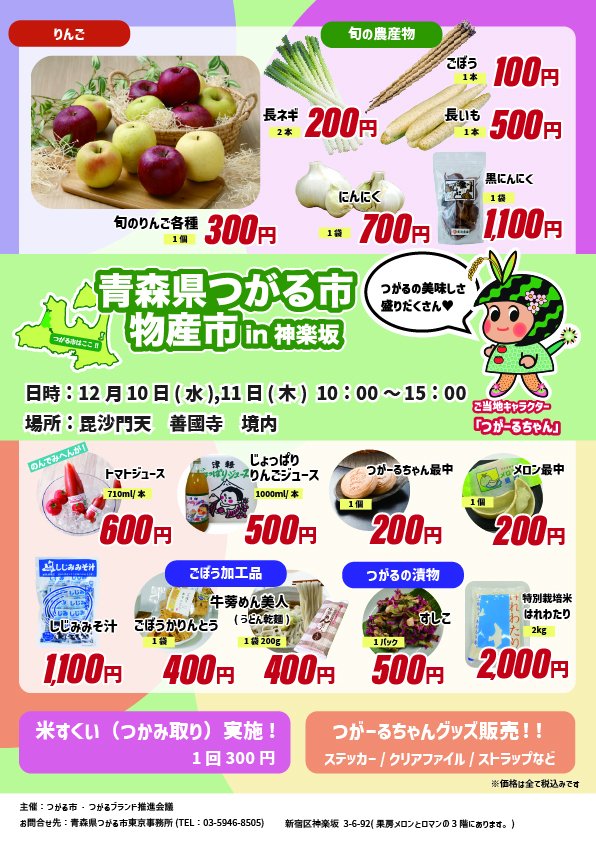 | Contact | つがる市東京事務所(TEL.03-5946-8505) |