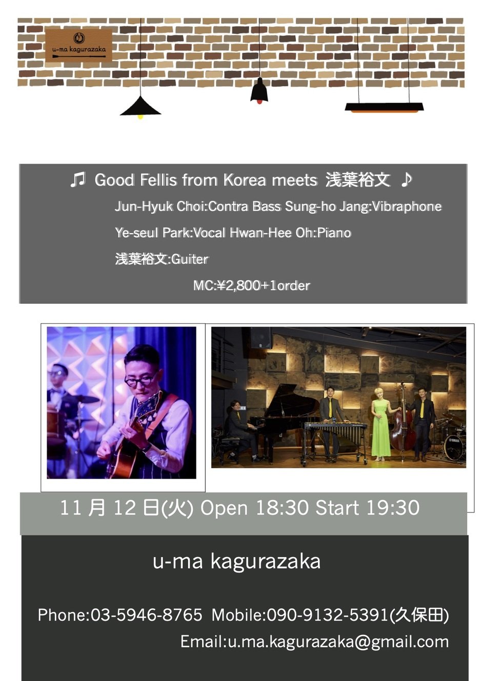 MC:¥2,800+1オーダー Open 18:30 Start 19:30