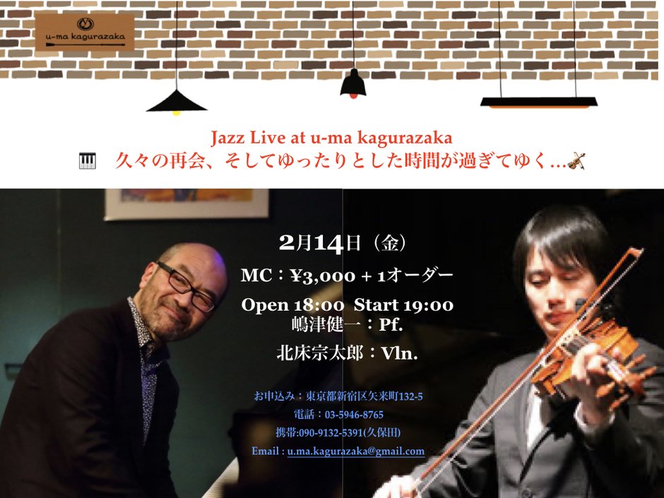 | Contact | mail address: u.ma.kagurazaka@gmail.com Phone: 03-5946-9¥8765 Mobile: 090-9132-5391(久保田) |