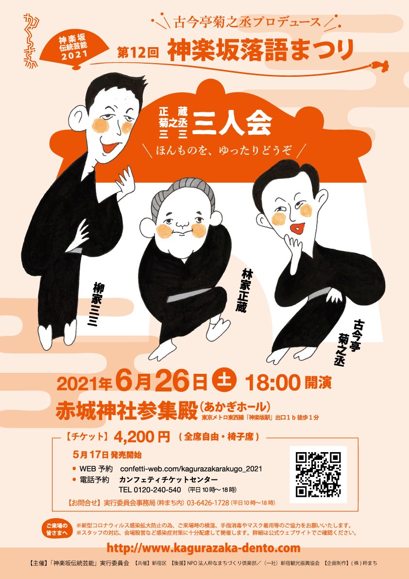 | Location | 赤城神社参集殿(あかぎホール) (新宿区赤城元町1-10) 東京メトロ東西線「神楽坂駅」出口1b 徒歩1分 都営大江戸線「牛込神楽坂駅」出口A3 徒歩8分 |