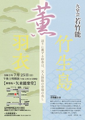 令和3年2月と7月の若竹能公演は、令和2年2月と7月に予定しておりました公演が中止となりましたため、ほぼ同じ内容(演目・演者)で上演いたします。