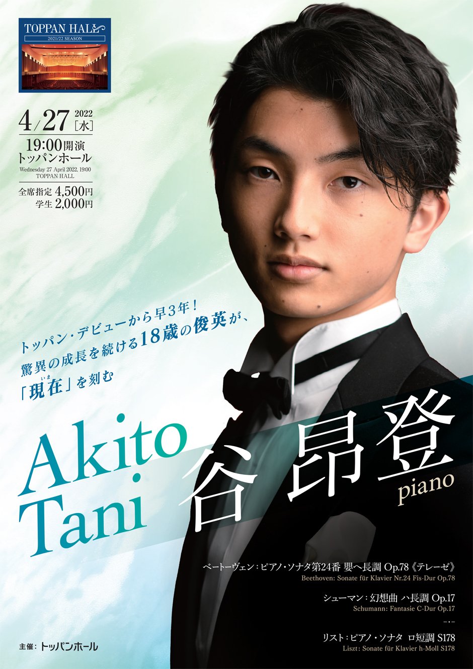2021年の日本音楽コンクールを圧巻の演奏で制した、谷昂登。