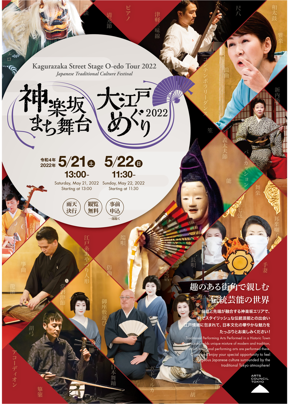 | Contact | お問合せ 「神楽坂まち舞台・大江戸めぐり2022」事務局(古典空間内) 担当:小野木、佐藤 TEL 03-5478-8265(平日10-18時) FAX 03-5478-8267 メール contact@kaguramachi.jp 公式ウェブサイト https://kaguramachi.jp/ |