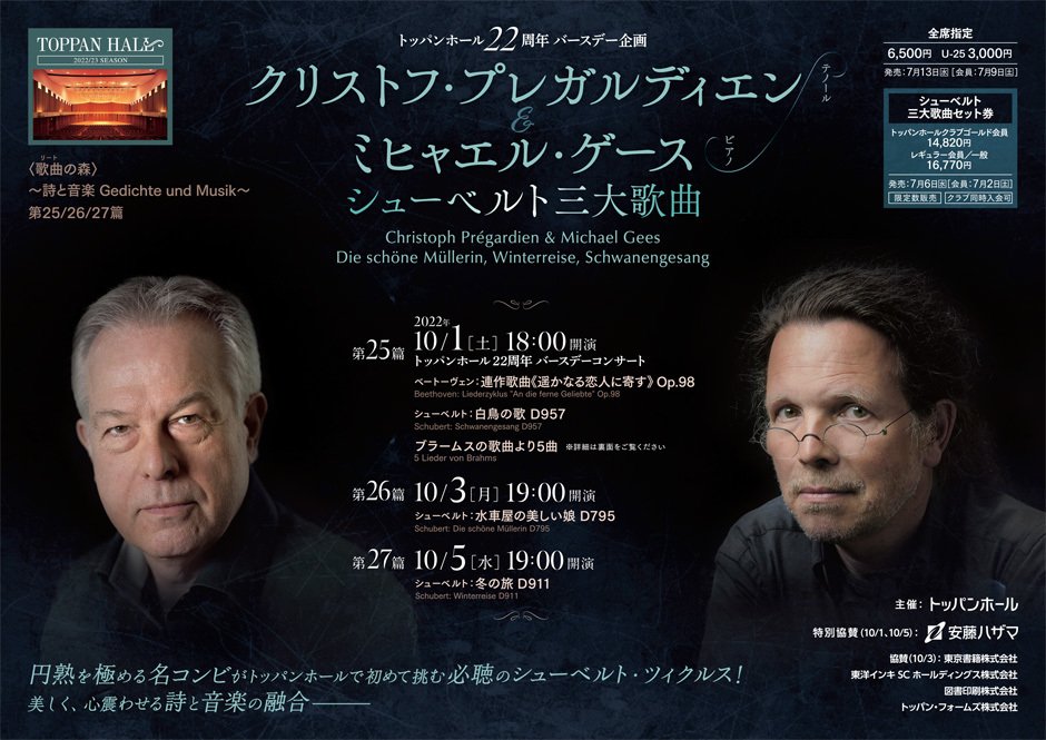 円熟を極める名コンビ、トッパンで初めて挑むシューベルト・ツィクルス!