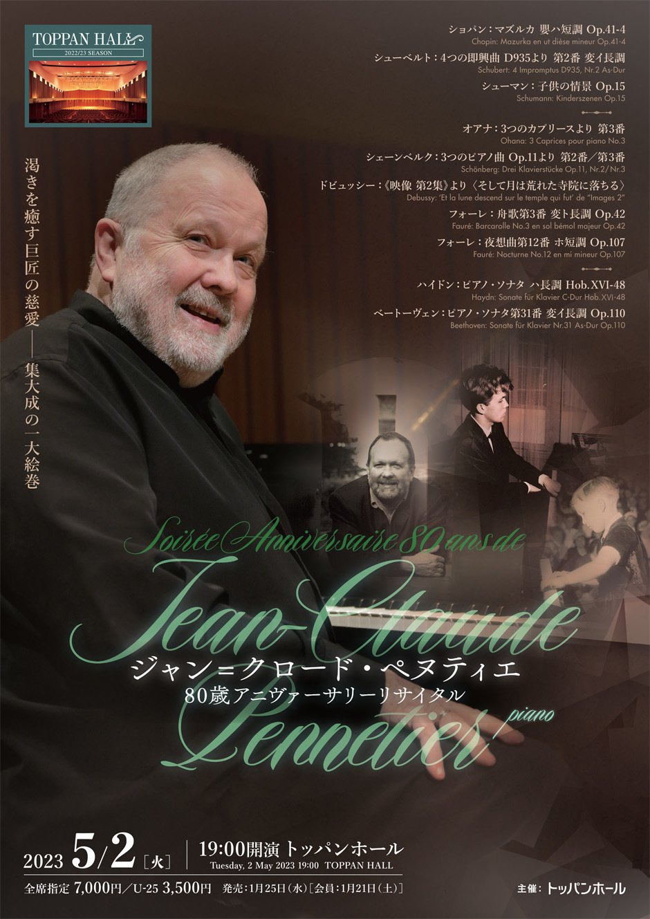 ジャン=クロード・ペヌティエ(ピアノ)80歳アニヴァーサリーリサイタル【完売】