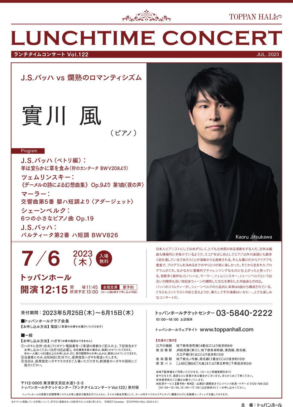 | Contact | トッパンホールチケットセンター 03-5840-2222(平日10:00~18:00) |