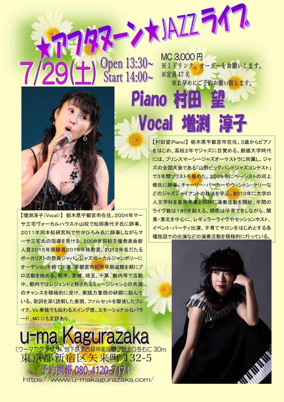 | Contact | Email: u.ma.kagurazaka@gmail.com Phone: 03-6873-6746 予約専用: 080-4120-7171 |