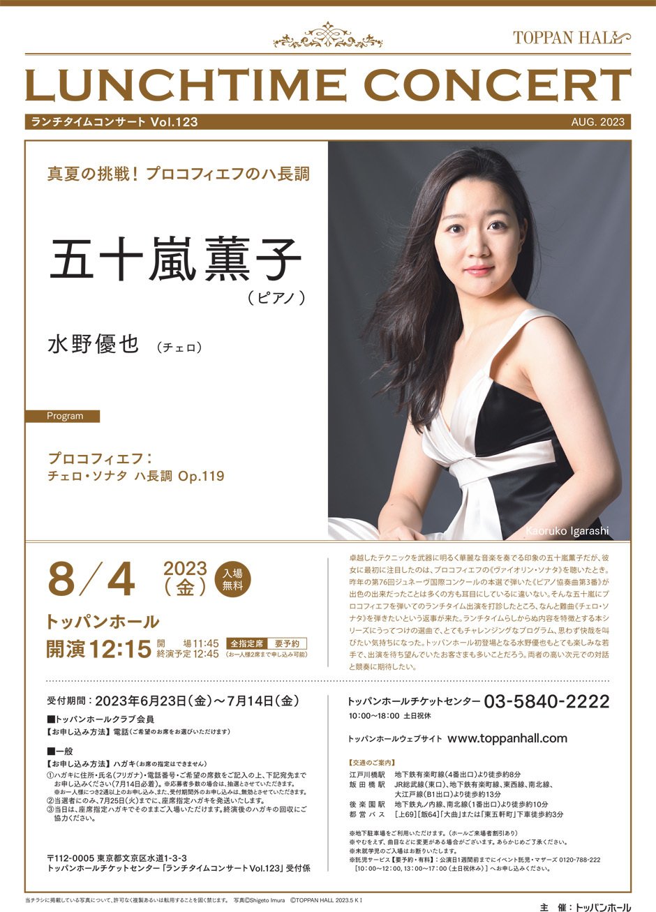 | Contact | トッパンホールチケットセンター 03-5840-2222(平日10:00~18:00) |