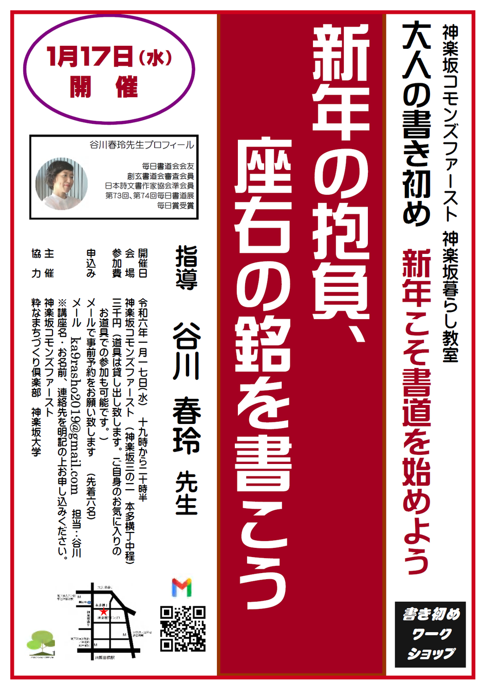 | Participation Fee | ひとり 3,000円 (税込み) 当日会場でお支払い下さい。 |