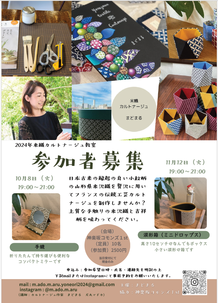 | Participation Fee | 一回2500円(材料費込み・当日受付にて) |