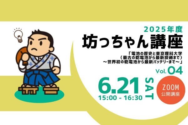 坊っちゃん講座 第4回「電池の歴史と東京理科大学(最古の乾電池から最新技術まで)~世界初の乾電池から最新バッテリーまで~」