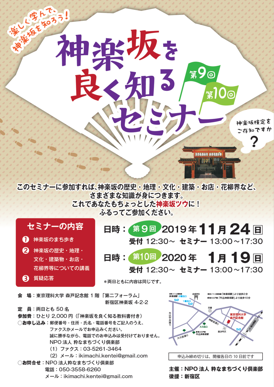 | Participation Fee | 2,000 円(「神楽坂を良く知る教科書」付き) |