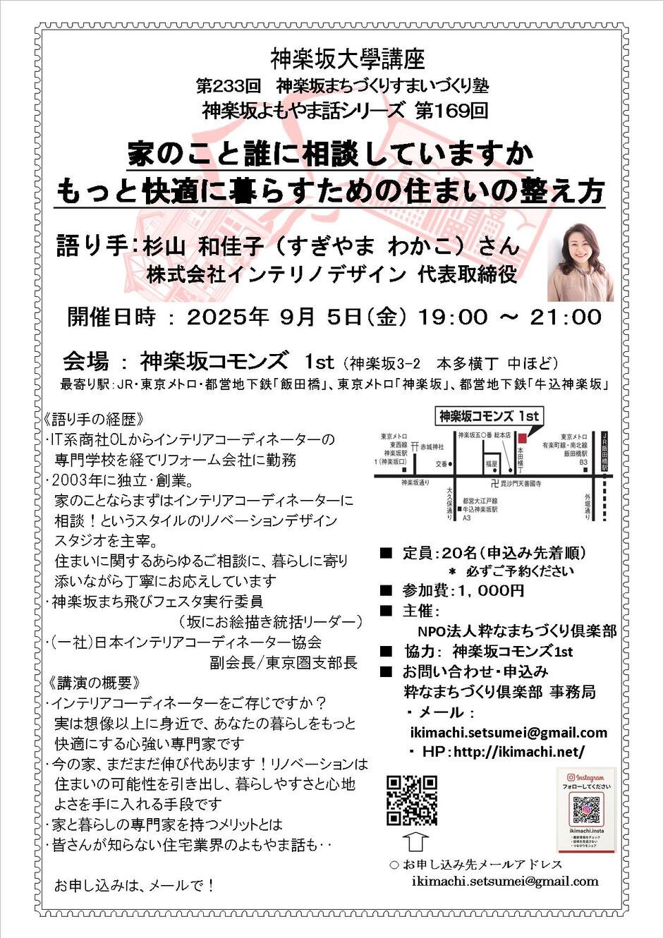 会場 : 神楽坂コモンズ 1st (神楽坂3-2 本多横丁 中ほど)