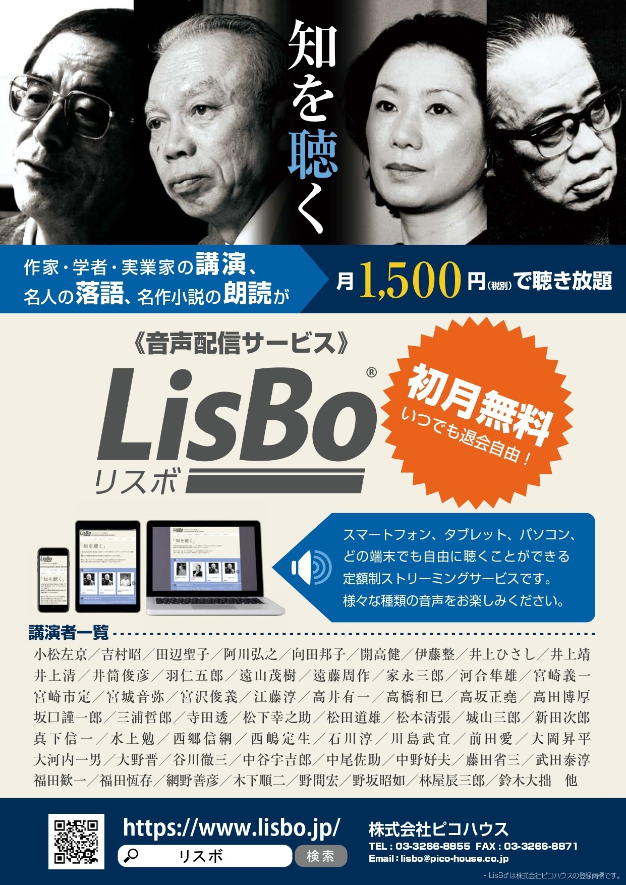 今後ピコハウスでは、その他に夏目漱石、江戸川乱歩、泉鏡花、北原白秋、島崎藤村、石川啄木、永井荷風、内田百間、加能作次郎、水野仙子、矢田津世子など、神楽坂に縁の深い小説家や詩人の作品をオーディオブック化し、順次配信していく予定です。